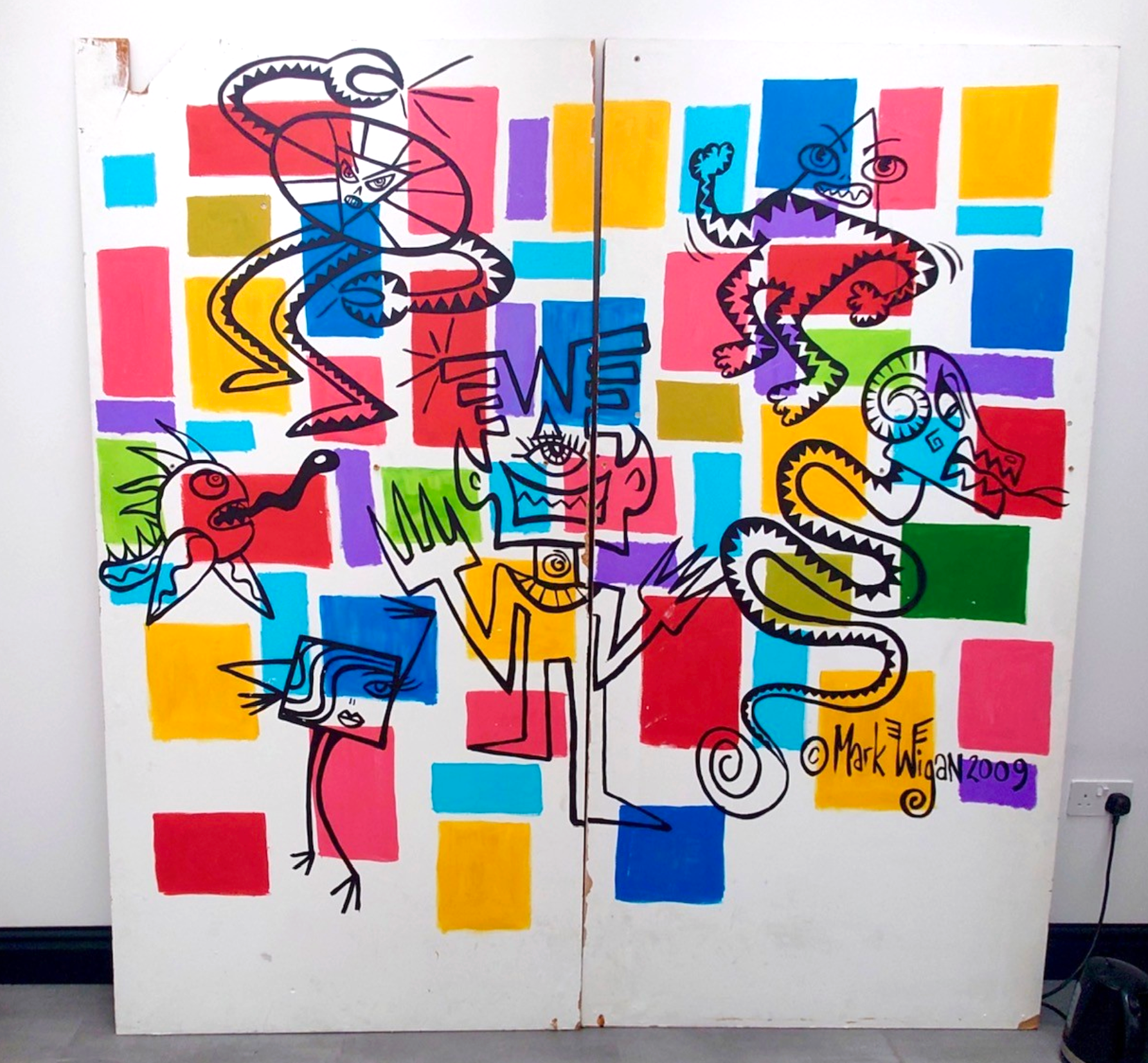 Large paintings! 2 panels 8 foot by 4 foot each originally painted at Noiselab Market St Manchester in 2009. If purchasing you will need to collect from Manchester or email markwigan@hotmail.com regarding shipping as they are painted on large heavyweight boards